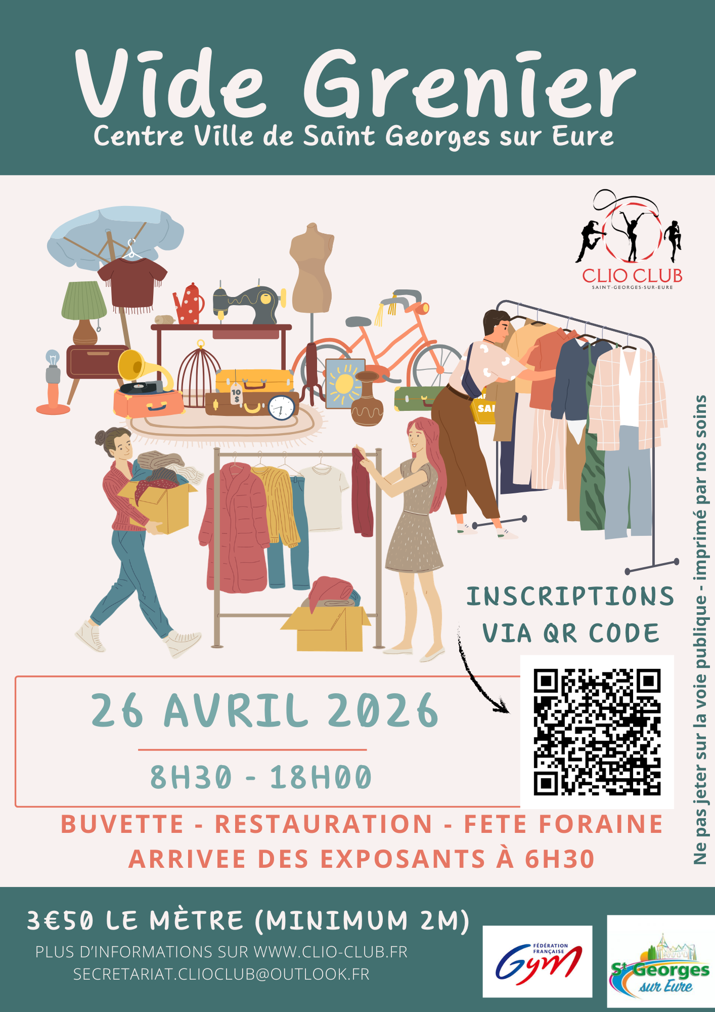 VIDE GRENIER CENTRE VILLE SAINT GEORGES SUR EURE 26 AVRIL 2026 / 8h30 A 18h00 INSCRIPTION FLASHEZ LE QR CODE https://www.helloasso.com/associations/ |